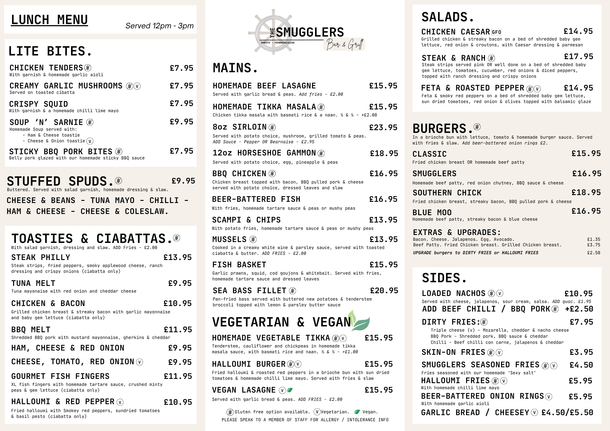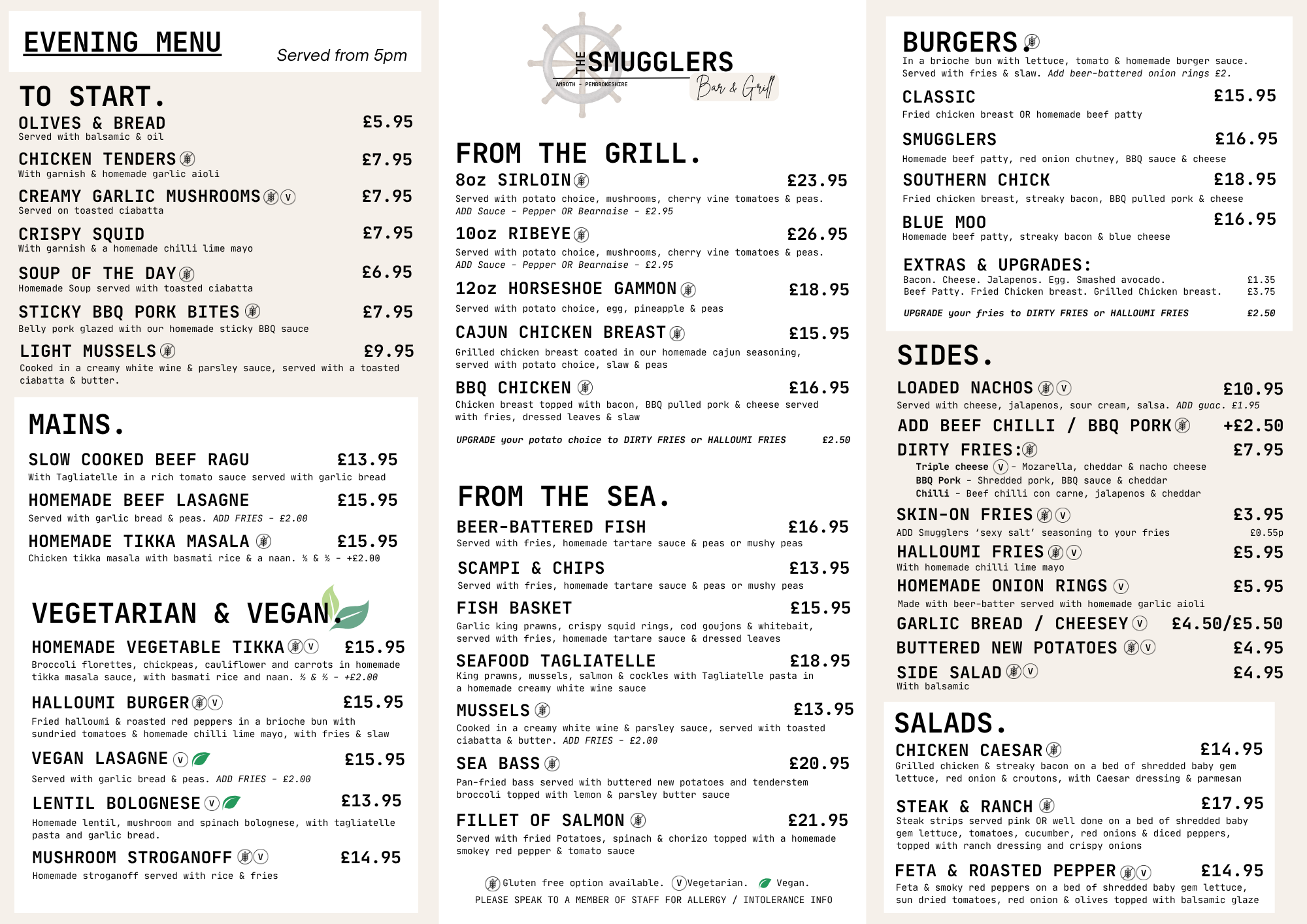 We take great pride in the quality and taste of the meals we serve, with a wide selection of food available, all prepared fresh to order. Lunchtime menu served from 12-3pm. Evening menu served from 5pm-close.